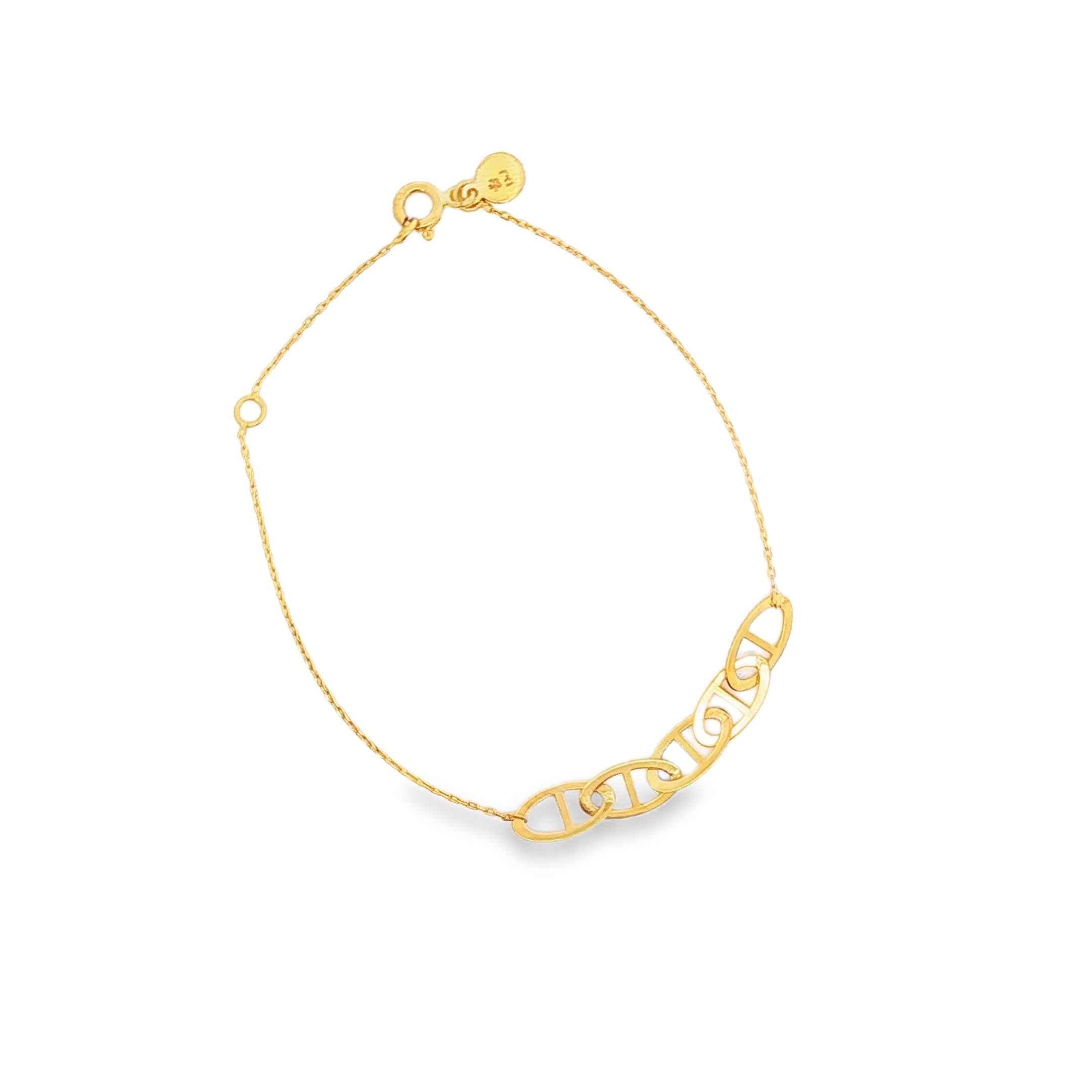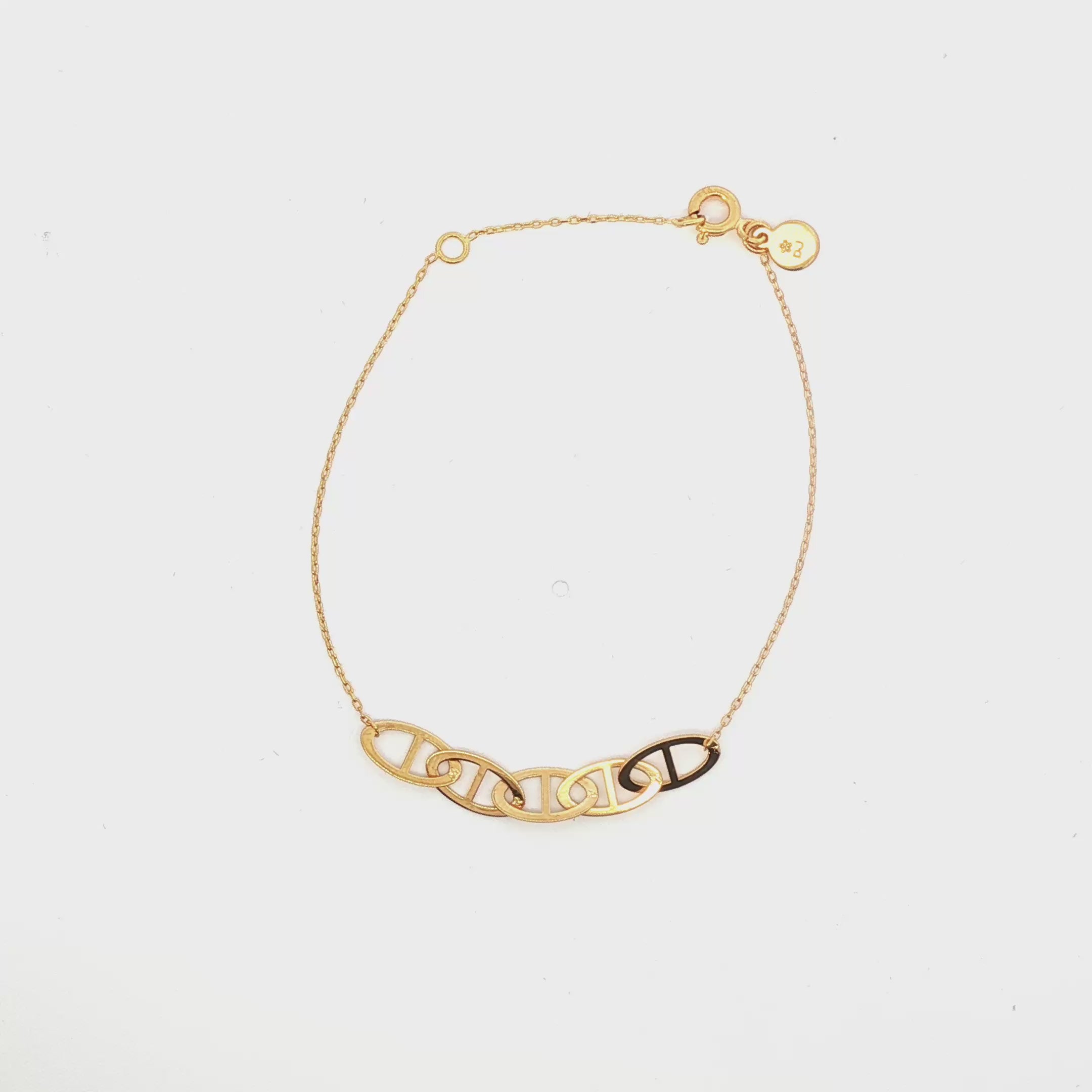 Symbolizing strength and stability, the Anchor Bracelet is crafted in solid 22K gold with a refined interlocking link design. Its bold centerpiece evokes resilience and connection, while the delicate chain adds a touch of modern elegance. Designed for effortless wear, this bracelet is a timeless accessory that enhances both casual and formal looks.