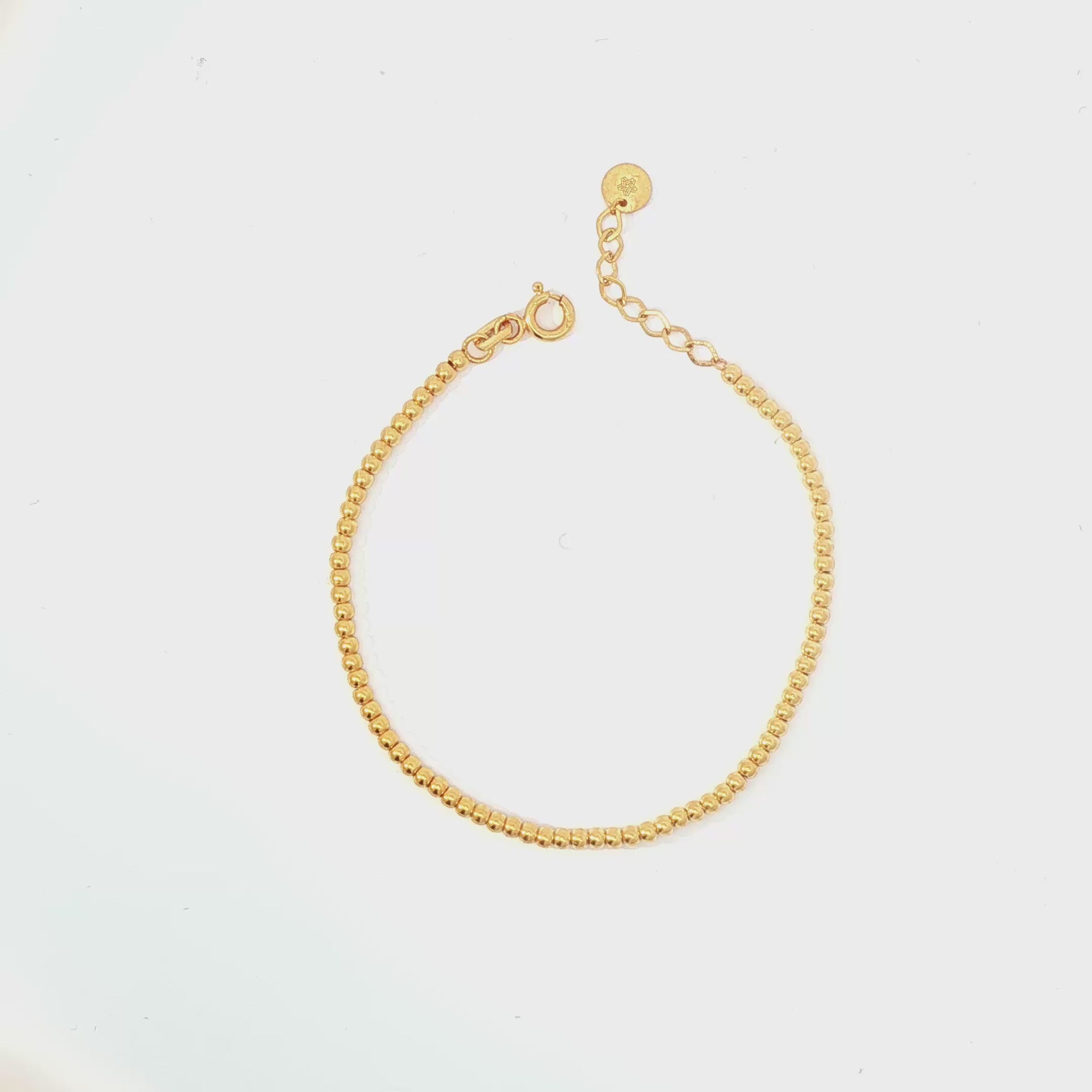The Eterna Bead Bracelet is a timeless expression of elegance, crafted from solid 22K gold. Featuring a continuous strand of polished gold beads, this bracelet radiates sophistication while maintaining a minimalist modern design. Lightweight and versatile, it’s perfect for daily wear, yet refined enough to elevate evening looks. The adjustable clasp ensures a secure and comfortable fit, making it an essential addition to any fine jewelry collection.