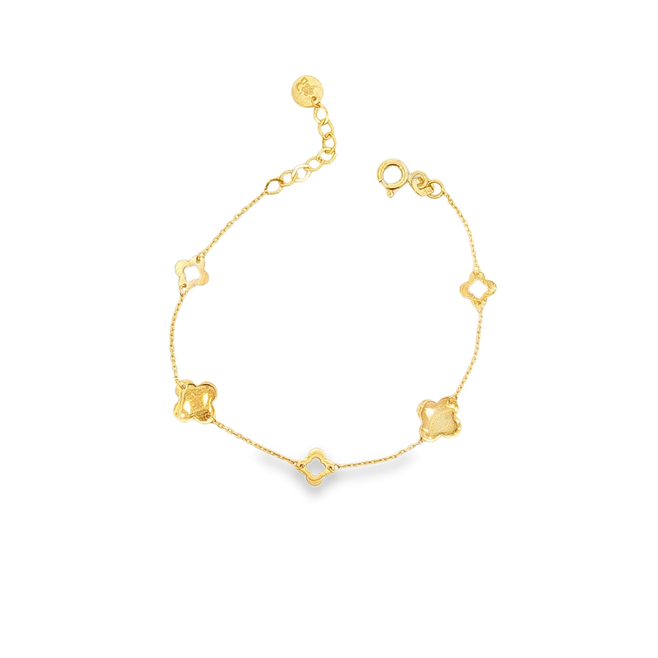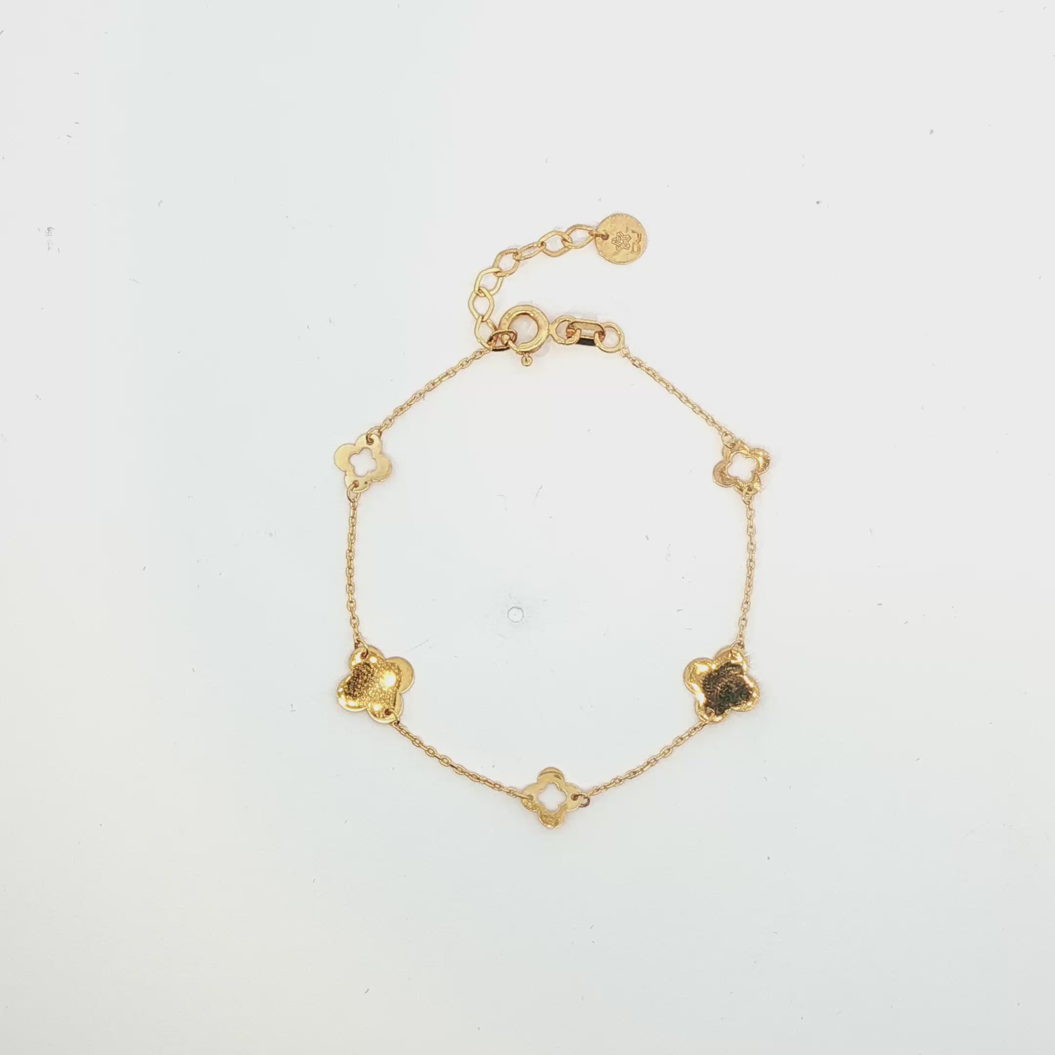 The Golden Clover Bracelet embodies timeless elegance with a touch of charm. Handcrafted in solid 22K gold, this delicate chain bracelet features beautifully designed clover motifs, each symbolizing luck, prosperity, and positivity. Lightweight and refined, it’s perfect for everyday sophistication or special occasions. The adjustable clasp ensures a secure and comfortable fit, making it a versatile piece that pairs effortlessly with other fine jewelry or stands out on its own.