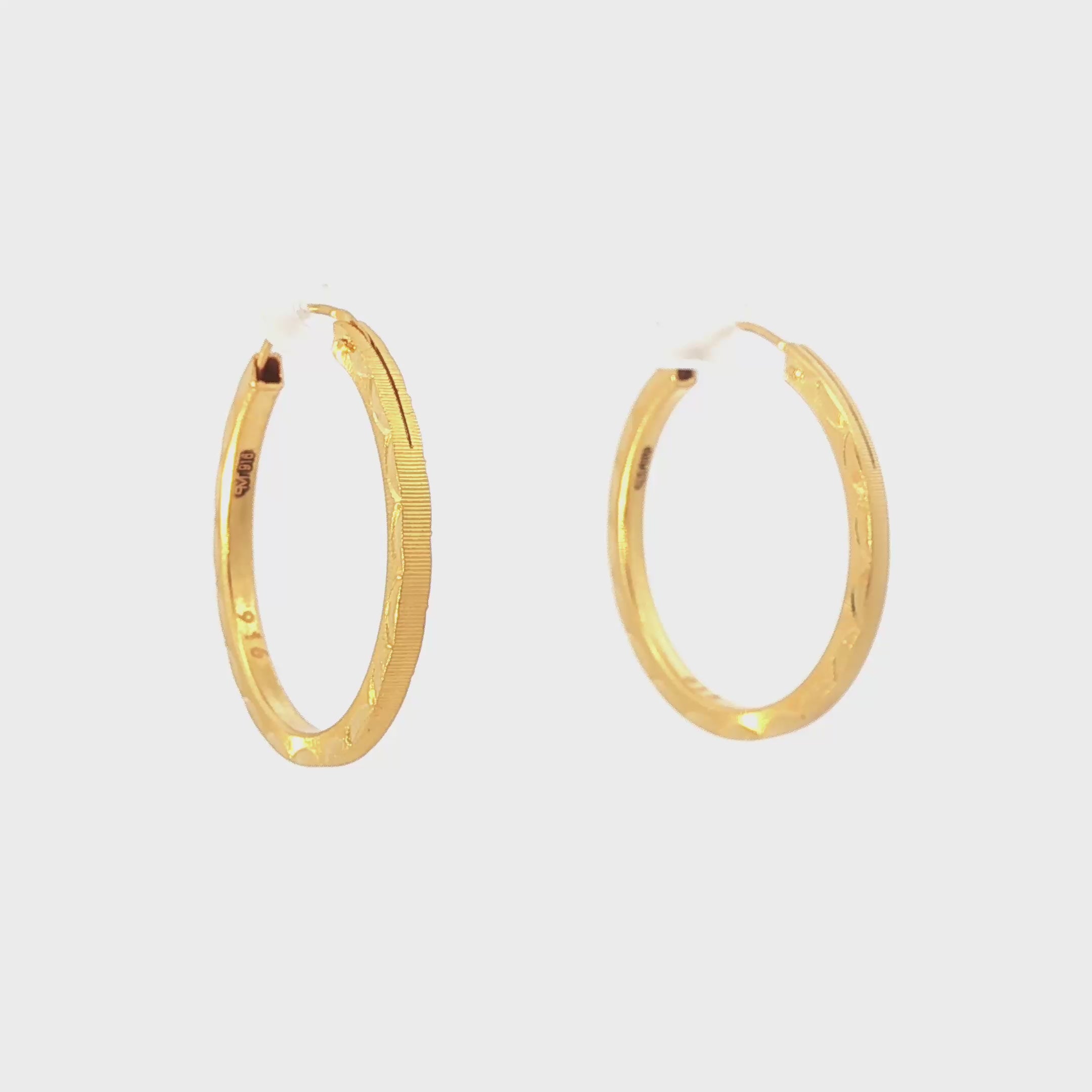 Elevate your style with these classic yellow gold hoop earrings. Crafted from lustrous gold, the timeless circular design is enhanced with delicate patterned details. These earrings will add a touch of understated elegance to any ensemble, making them perfect for both casual and formal occasions.