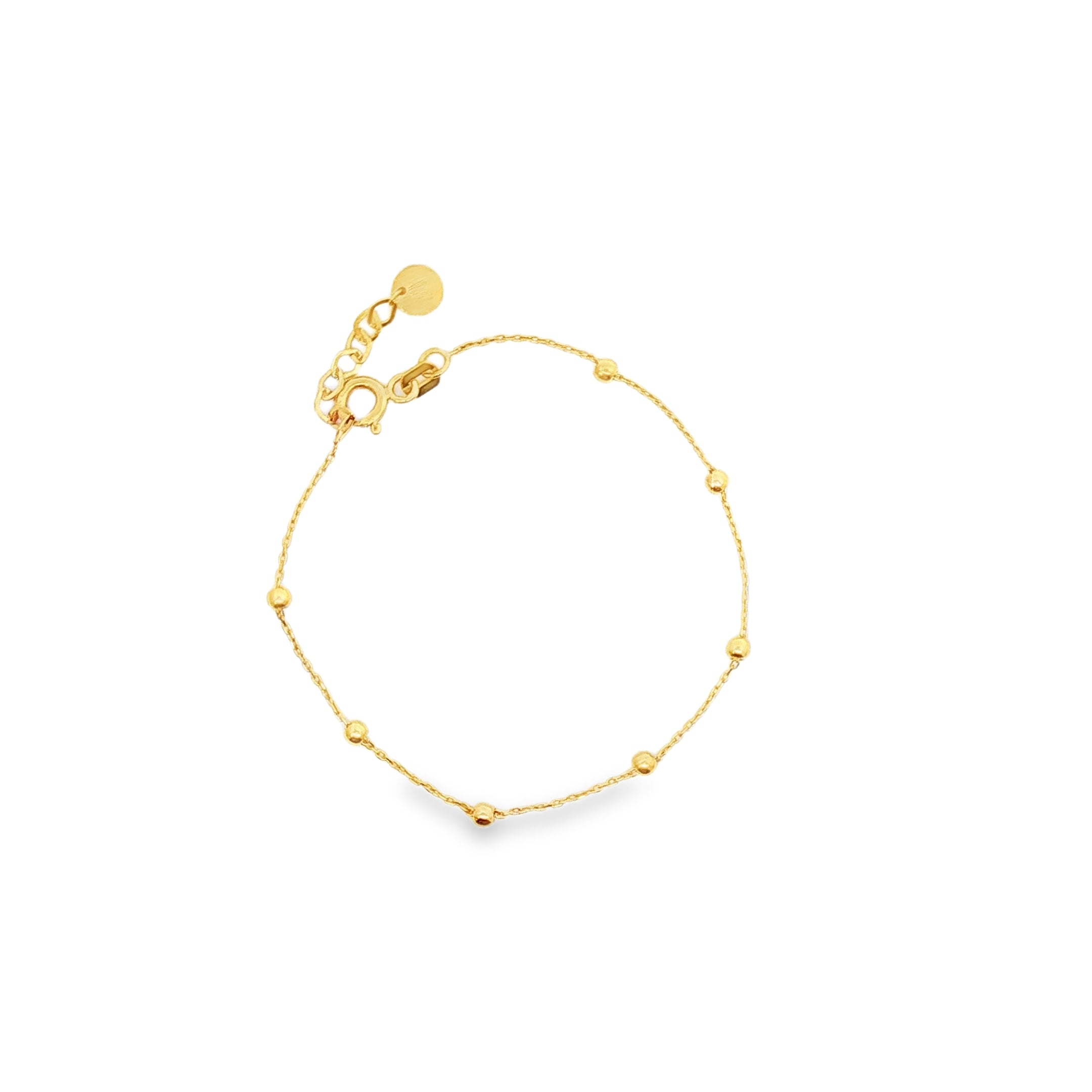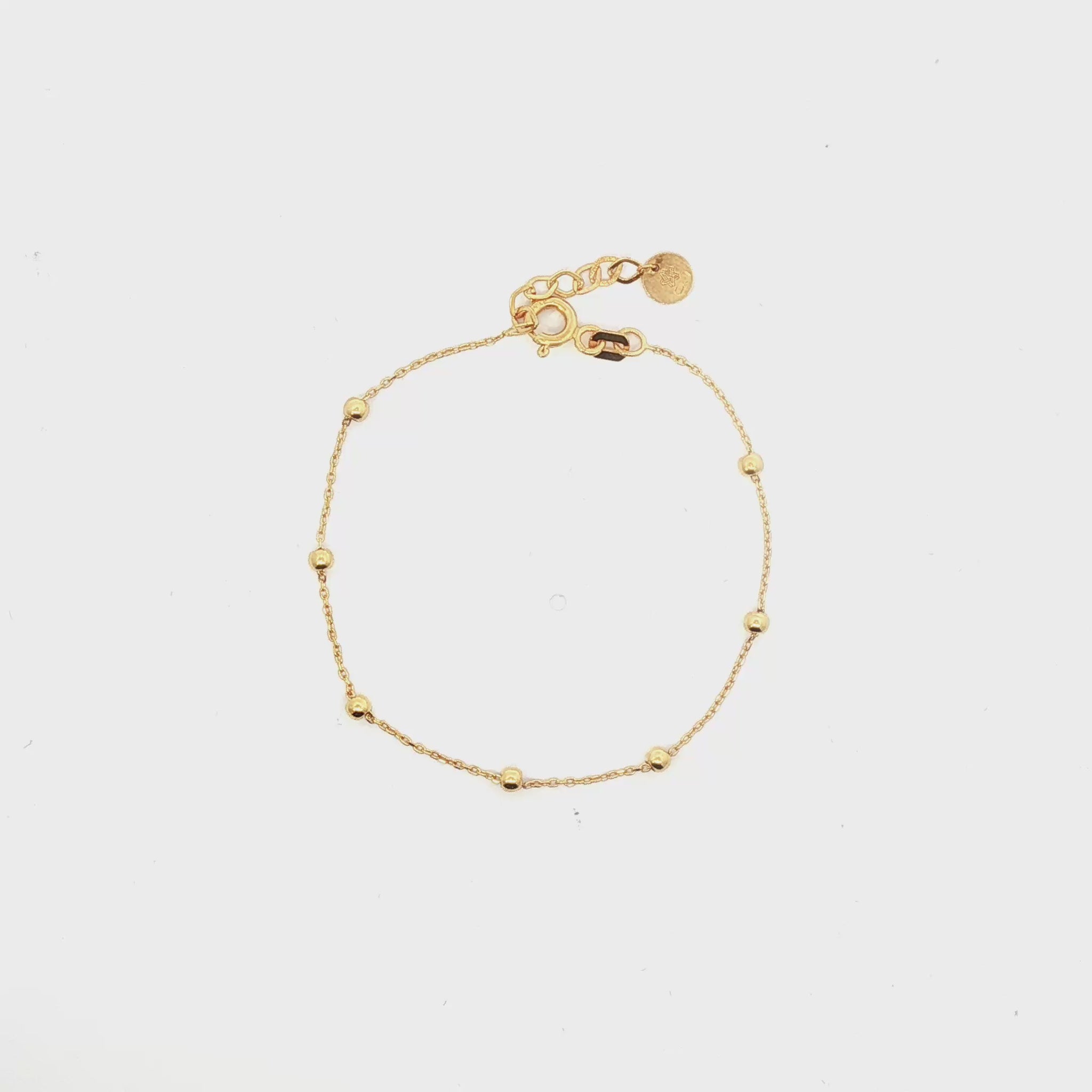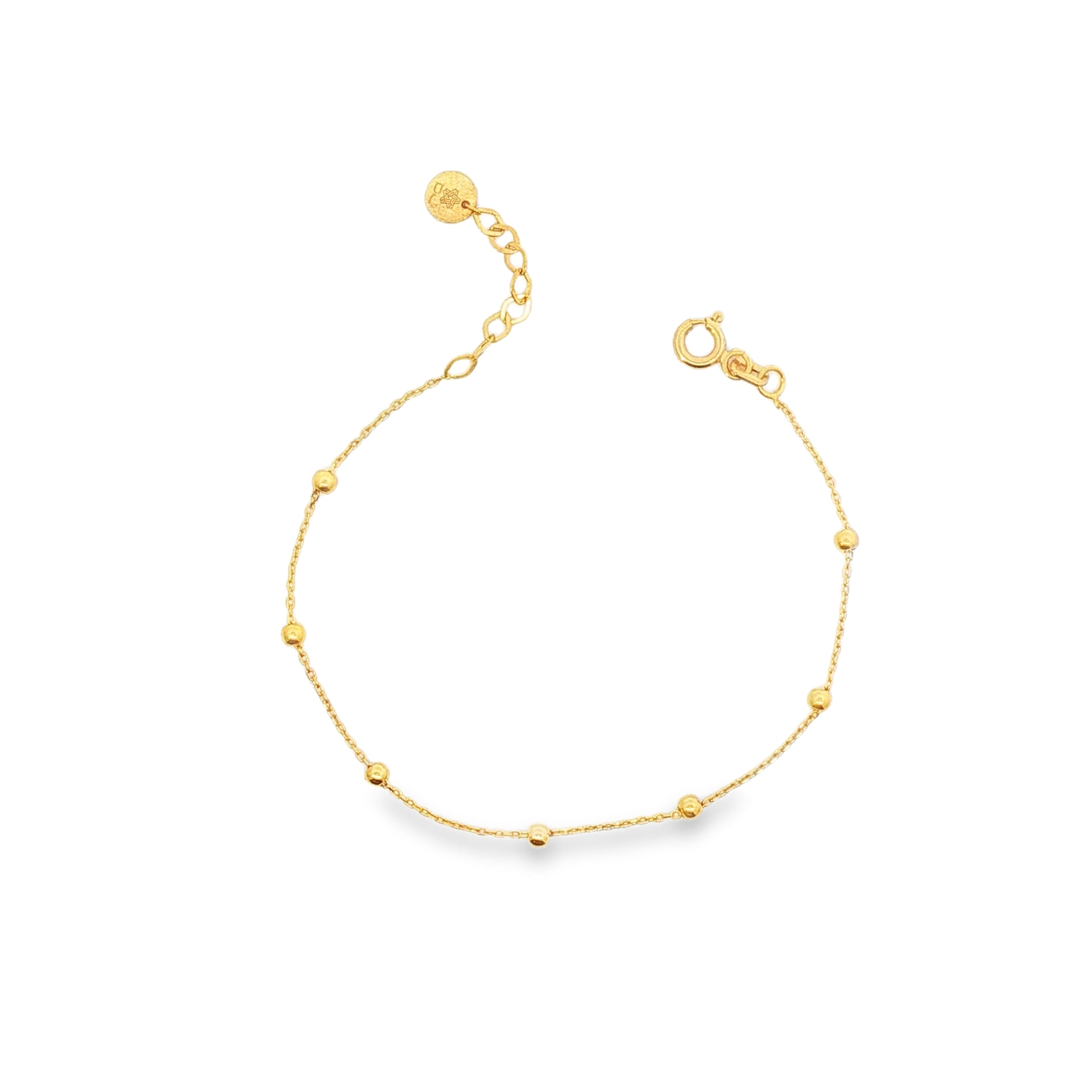 The Luna Bead Bracelet blends contemporary style with timeless luxury. Crafted from solid 22K gold, its minimalist design features delicate gold beads spaced along a fine chain for a modern, elegant look. Lightweight and versatile, this bracelet is perfect for layering or wearing solo, effortlessly elevating any outfit.